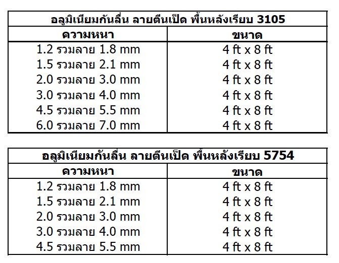 คุณสมบัติอลูมิเนียมกันลื่น ตีนเป็ด 1100 , 3105 , 5754
