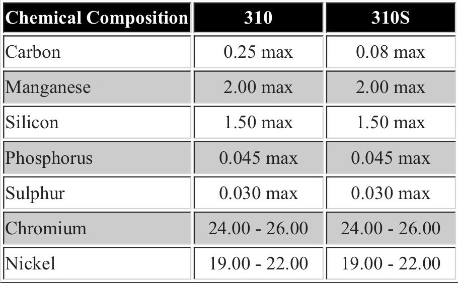 ความแตกต่างระหว่างส่วนประกอบทางเคมีของ สแตนเลส 310 และ 310S